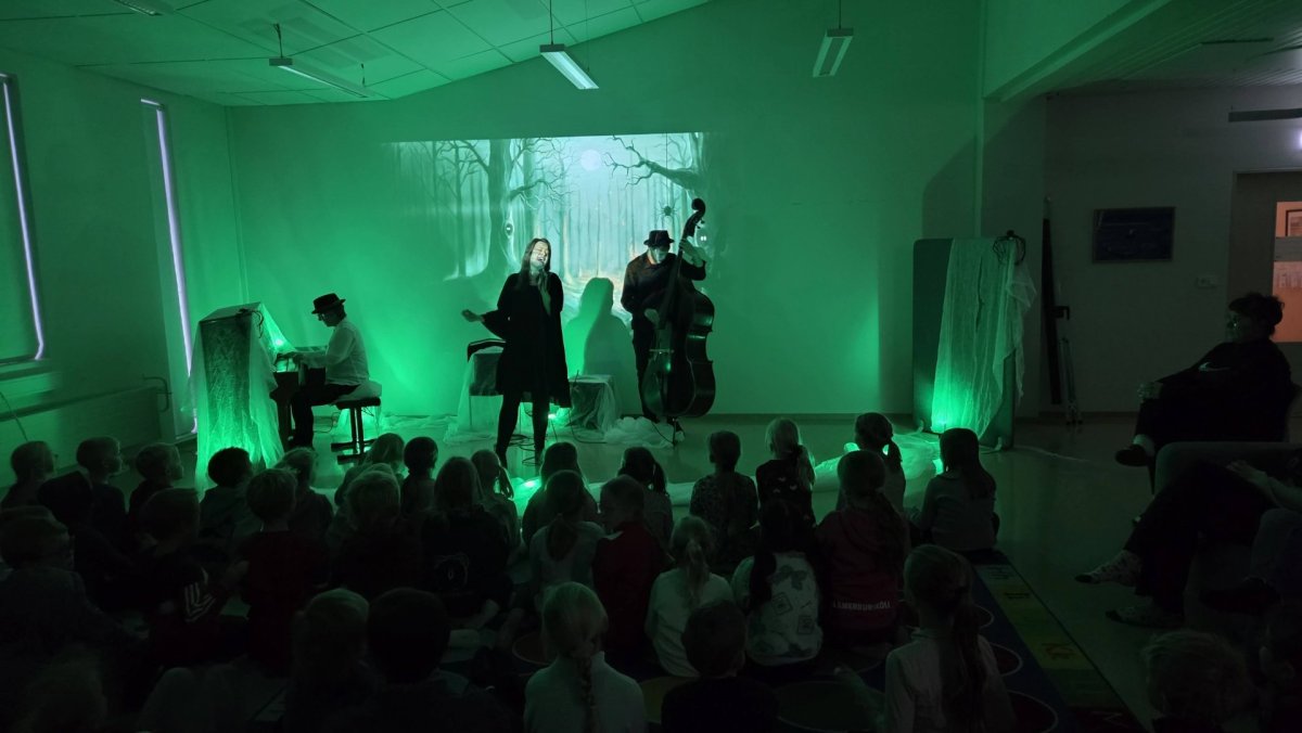 Nemendur í 1.-4. bekk fengu skemmtilega heimsókn miðvikudaginn 29. október þegar þrír frábærir tónlistarmenn, Ingibjörg, Sunna og Leifur, fluttu verkefnið Jazzhrekkur. Þau spiluðu spriklandi nýja jazztónlist en lögin fjölluðu um fyrirbæri tengd hrekkjavöku; drauga, nornir, afturgöngur og kóngulær. Krakkarnir sem og fullorðna fólkið sem horfðu á voru hugfangin allan tímann og nutu skemmtunarinnar í botn. Hérna eru myndir og myndbönd frá viðburðinum.