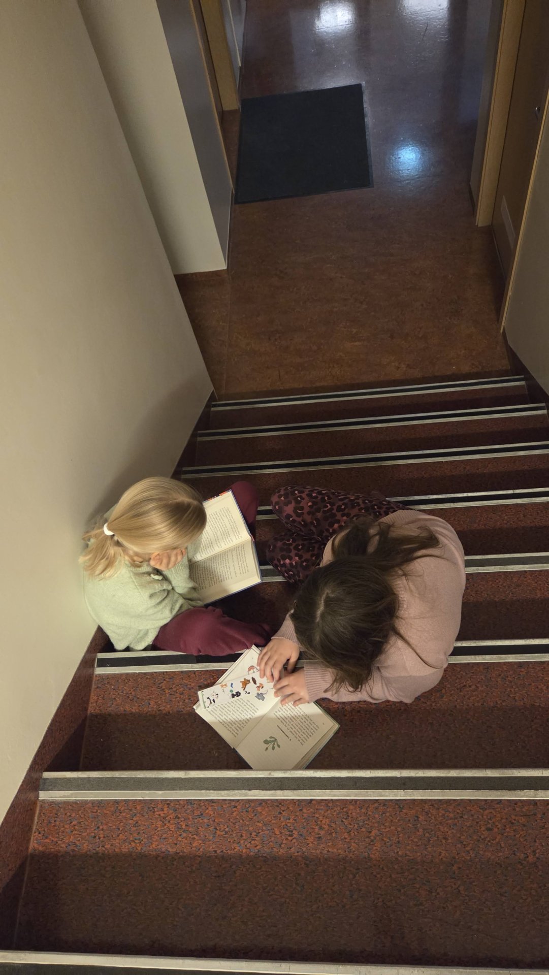 Lesum saman er ein af hefðunum okkar en einu sinni í mánuði dreifum við okkur um skólann og lesum í bókunum okkar. Börn og starfsfólk eru alltaf spennt fyrir þessu og njóta sín vel við lestur. Þetta er afar lestrarhvetjandi því lestur er bestur!