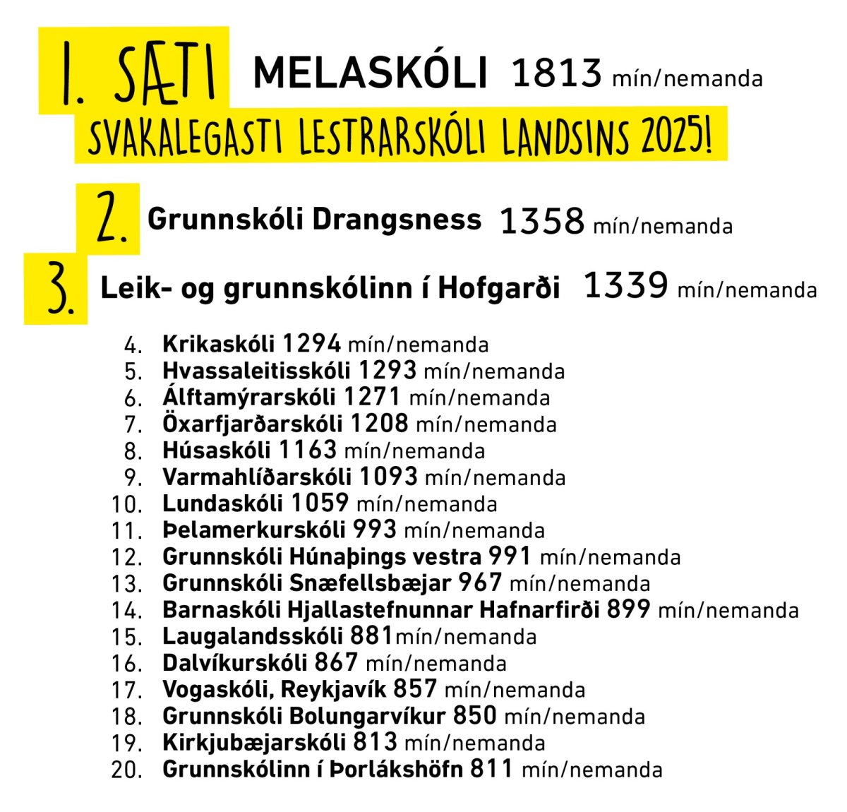 Nemendur í 1.-6. bekk tóku þátt í svakalegu lestrarkeppninni og stóðu sig frábærlega! Niðurstöður eru komnar í hús og lenti Þelamerkurskóli í 11. sæti af 90 skólum! Frábær árangur hjá okkur krökkum en þau lásu að meðaltali 993 mínútur á hvern nemanda þennan mánuð sem keppnin stóð yfir. Tæplega 17 þúsund nemendur tóku þátt í keppninni á landsvísu.